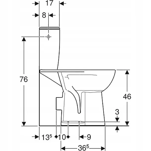 - Spłuczka owalna z zasilaniem bocznym z armaturą Geberit 6/3l