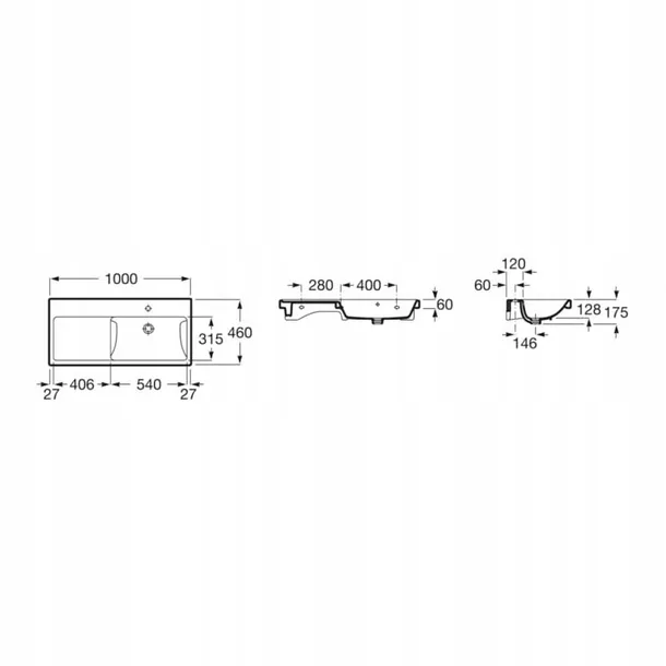 UMYWALKA ŚCIENNA ROCA 100X46 CM PROSTOKĄTNA BIAŁA